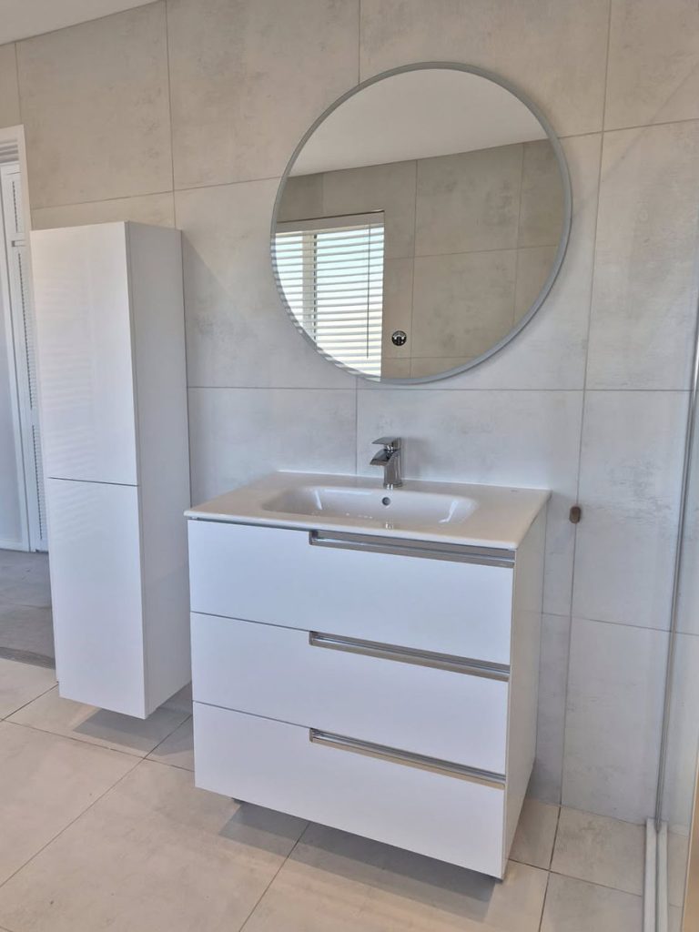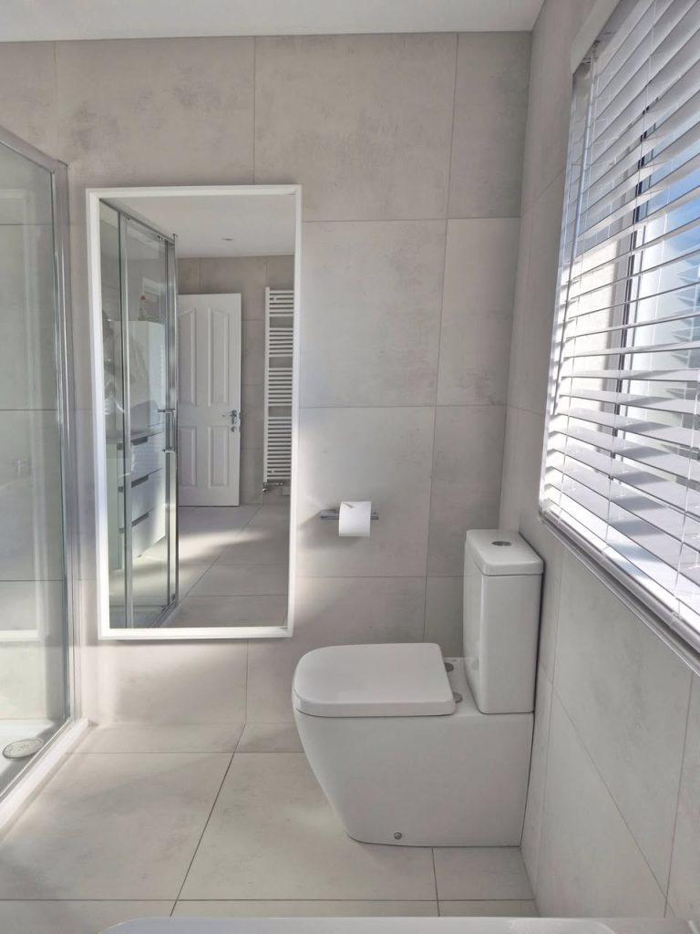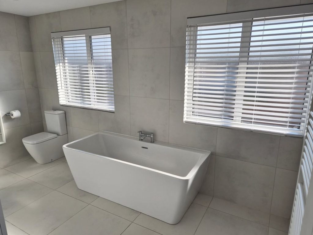 Having been made into one, there was plenty of room for a full sized bath, a 1200×800 shower, a large basin and furniture unit, another furniture unit and a loo. And still there’s plenty of space!